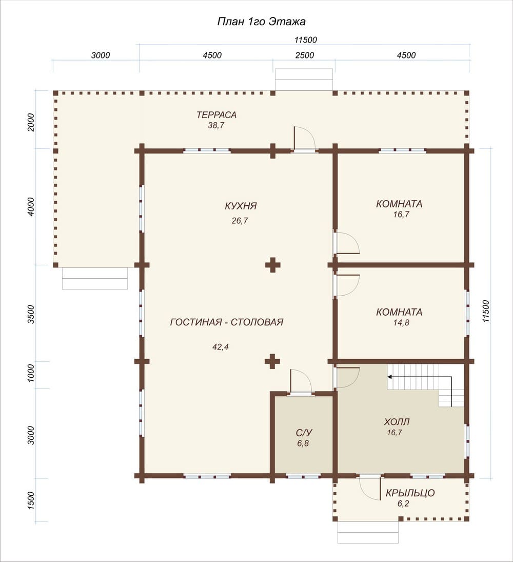 1-этаж - (теплая) 118,87, (общая) 168,15