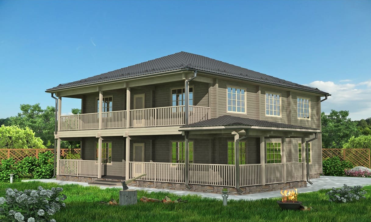 Дом из клееного бруса 233 кв.м. без учета террас, балконов и гаража.